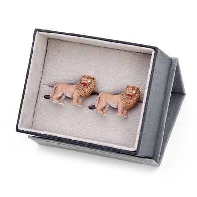 Ever wanted to go on an African safari? Then these Enamel Lion Cufflinks are perfect for you. A stunning masculine accent for the man who loves the wild or just wants to be the king of his own jungle, these Safari Lion Cufflinks are sure to turn heads. You won't need to roar to get attention the next time you walk into the room with these jaw-dropping Enamel Lion Cufflinks. Approximately it will measure in 7/8" x 3/4" dimension. It is rhodium plated base metal and comes with enamel Bullet back closure.