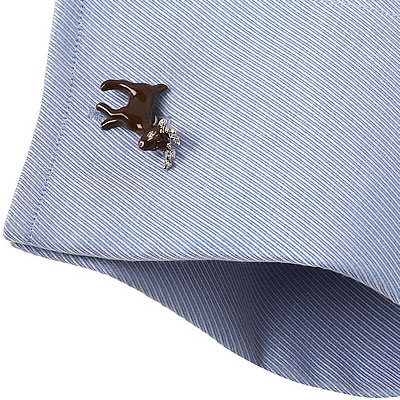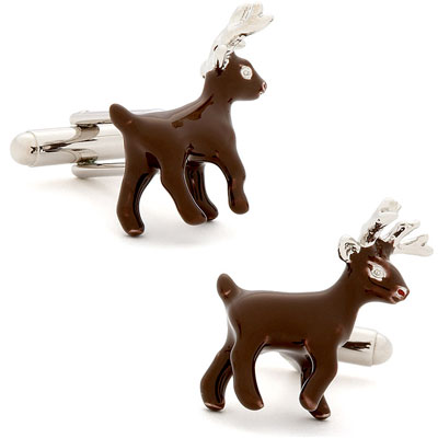 It is Enamel Reindeer Cufflinks. That is playful and fun; these Enamel Reindeer Cufflinks are the perfect accent for holiday parties and gatherings. Wearing this pair of Rudolf Christmas cufflinks lets a man ring in the spirit of the season while still maintaining a polished look. Approximately it will measure 6/8" by 1" in dimension. Enamel and nickel plated base metal Bullet back closure.