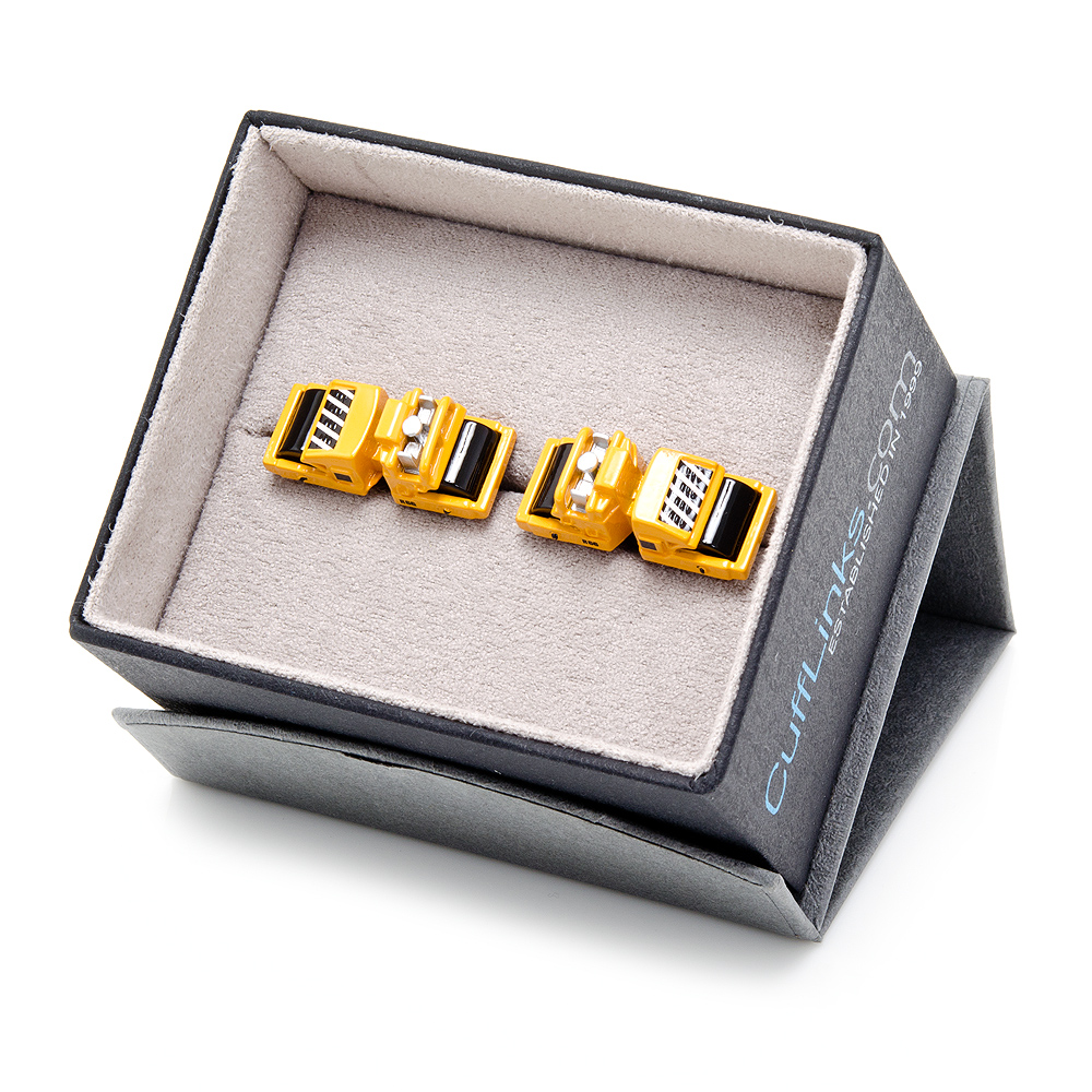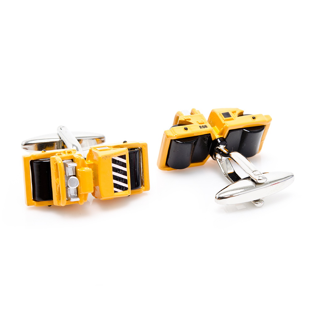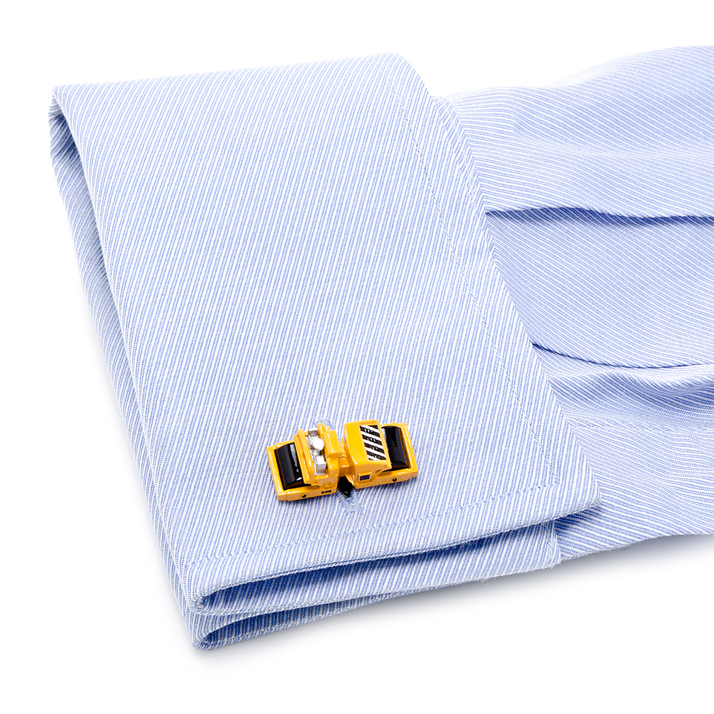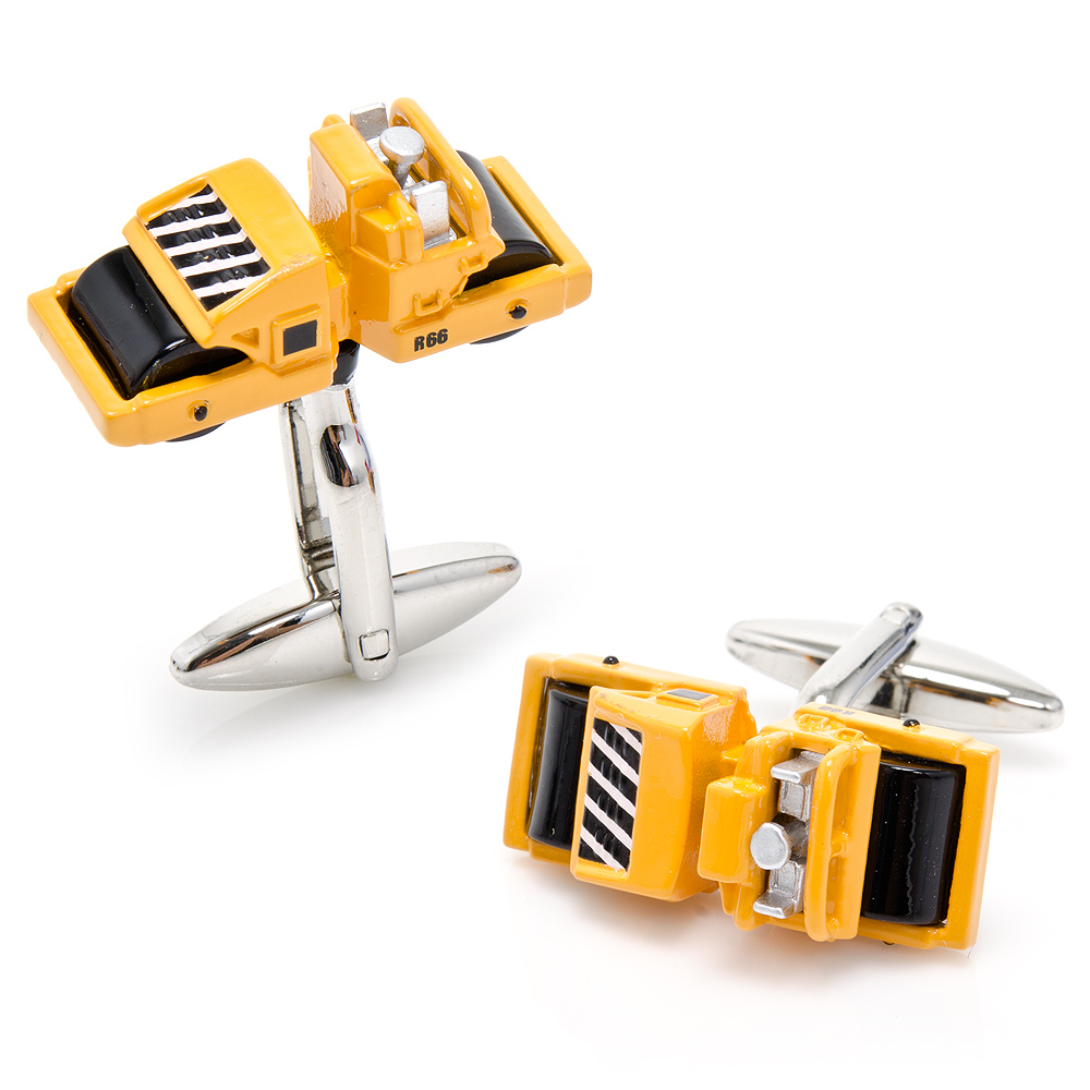 Roll into work or the next business event with a pair of these Steam Roller Cufflinks on your sleeve. With highly detailed yellow enamel body, black enamel rollers and black and white stripes on the side these Steam Roller Cufflinks are the must have gift to give to the construction worker in your life