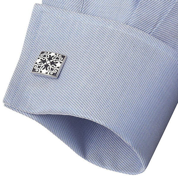 A refreshing stylish step in the right direction. Bold purple enamels create an appealing color hue to combine with ornate detailing inside this prince cut silver setting. Add some sophistication in your dressing with this magnificent pair of English Reef Cufflinks. The cufflinks are created by L2 and are created on a silver plated setting. A remarkable pattern has been created using various colored enamels to produce an excellent masterpiece on the silver frame. Rhodium plated silver is used to prevent tarnishing