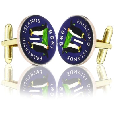 Falkland island coin cufflinks are for sophisticated style. These beautiful cufflinks are hand finished for designer perfection, and feature the design of one penny coin of Falkland with a blue background. These stylish cufflinks are a great gift idea for a banker, investor or stock broker, and truly add a splash of sophisticated style to any formal outfit!