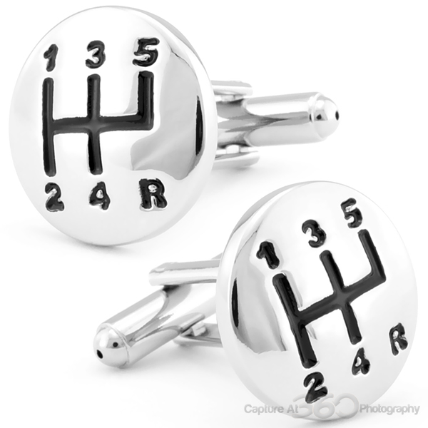It is Gear Shifter Silver Cuff Links Tired of the same old style? Shift gears with a pair of gear shifter rhodium cuff links. Having Circular design. Black numbers etched in silver, complete with glossy finish. Intricate detail. Polished to perfection. Just be careful when you put them in reverse! Size diameter: 11/16". Presentation box is included.