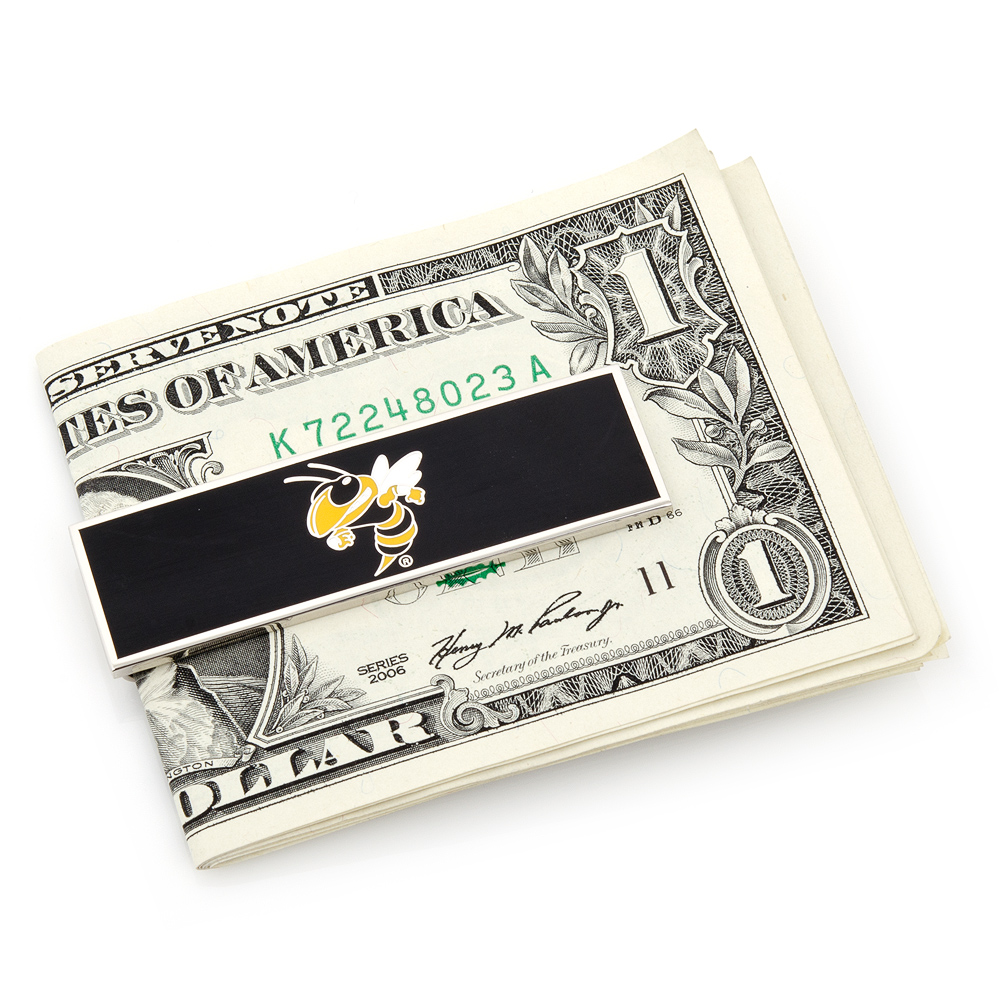 Carry your team passion wherever you go with the officially licensed Georgia Tech Yellow Jackets NCAA team money clip. Boasting a heavy-duty forged 27 gram weight construction and base metal plating, our team money clips are certain to make a loyal companion for years to come. Each team money clip is delivered wonderfully presented in the official NCAA gift box.