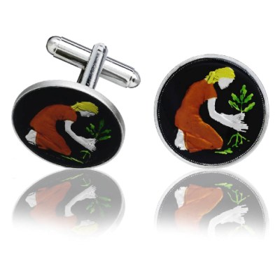 The Pfennig coins used in German Federal Republic showed the Farming Girl on the reverse. The beautiful hand finished cufflinks with the farming girl will get you noticed when you wear them to formal events like business meetings or wedding parties. You can enjoy looks of both envy and admiration from friends and colleagues.