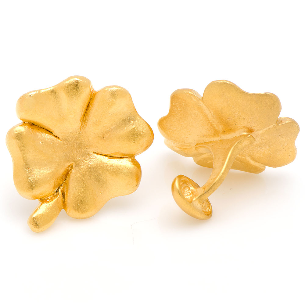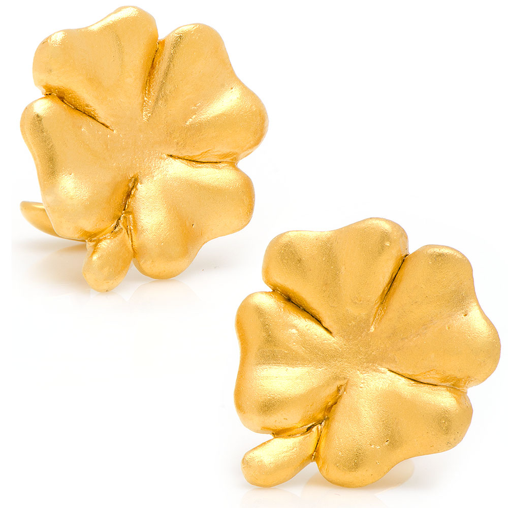 Approximately 1" in diameter. 24kt gold plated. Fixed oval back closure. Handcrafted in the USA.