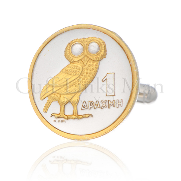 This real coin is first layered in pure bright silver. Then, by hand, the figure is highlighted and brought to life with rich, pure 24K gold. This breathtaking and exclusive work turns the coin into a stunning and true work of art. These days, two-tone accent pieces are very popular. They match well with any ensemble. You can be sure that when you step out wearing a pair of Greek 1-Drachma Owl coin cufflinks that you will get noticed. The best part is that you don’t have to make a trip to Greece in order to get your hands on them. It doesn’t matter if you’ve been to Greece or not, these Greek 1-Drachma Owl coin cufflinks don’t discriminate. But only a man who appreciates the artistic nature and appeal of exotic coin cufflinks is allowed to wear them.