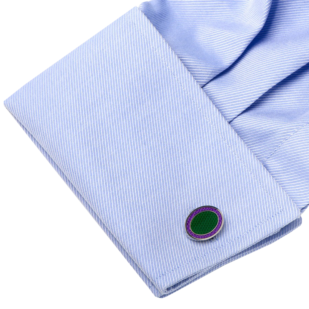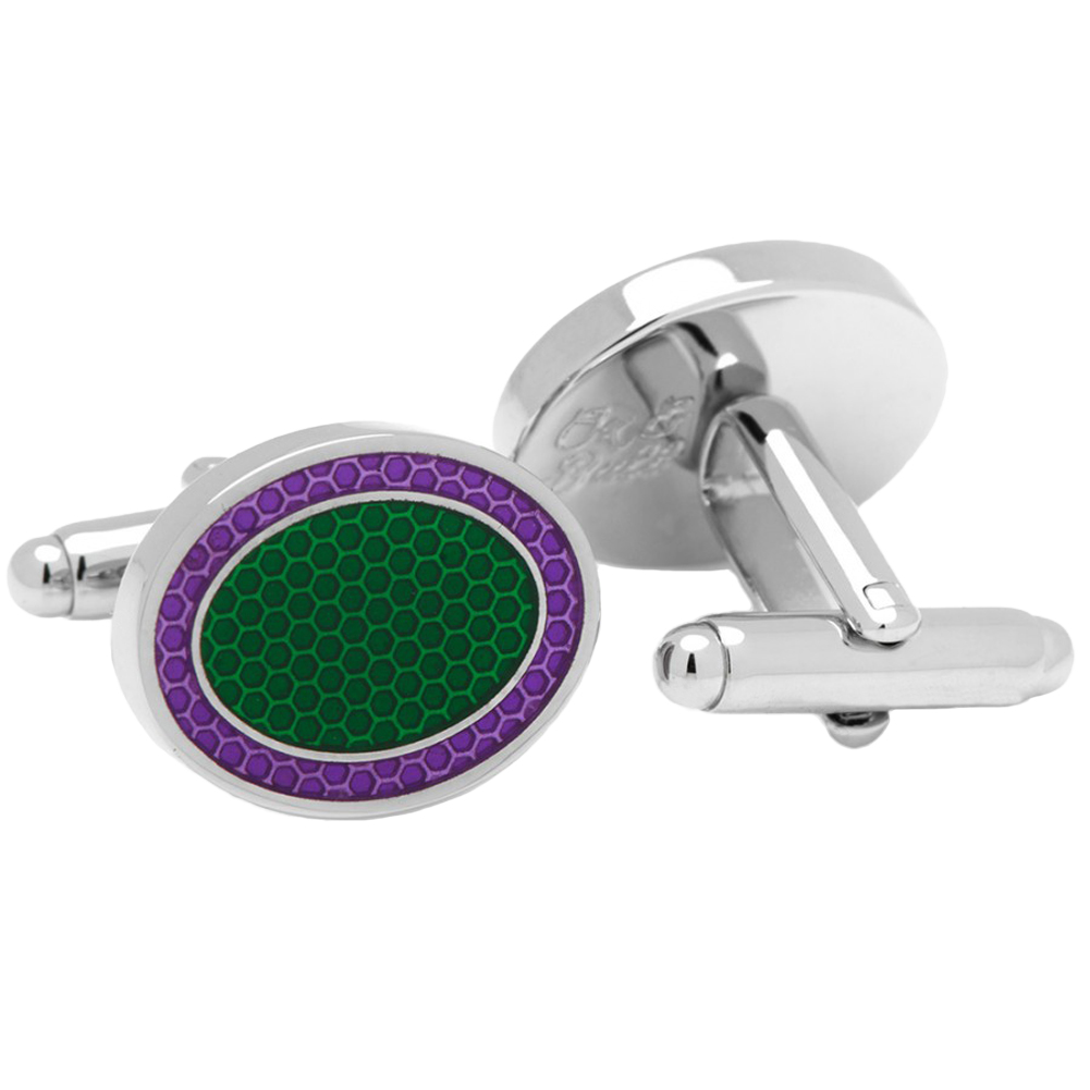 Green and Purple Oval Outline Cufflinks