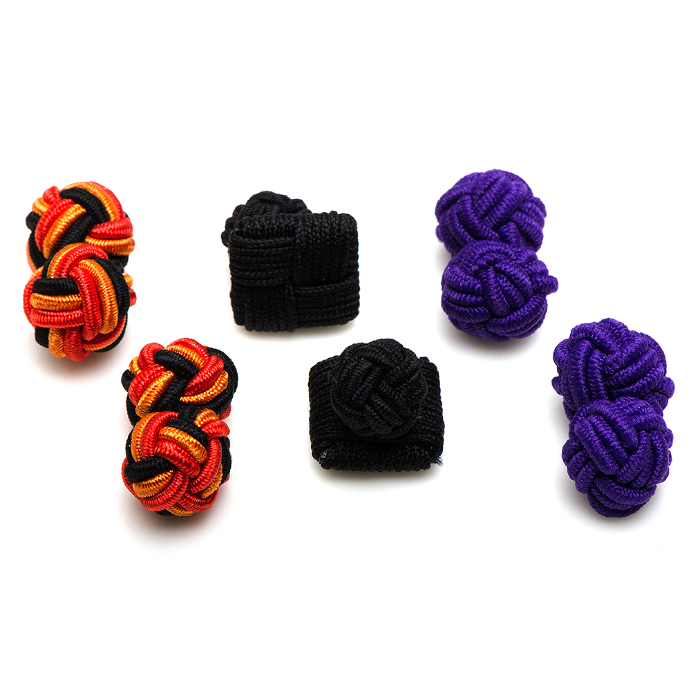 Approximately 3/4" by 3/8". Three pairs of assorted silk knots. Packaged in a corked glass vial.