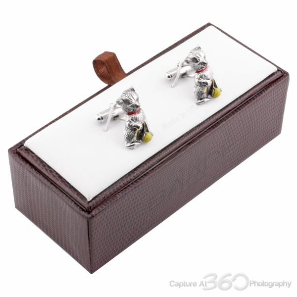 These Hand Painted Antique Cat Cufflinks come straight to you from the renowned Baade design team. Hand crafted from rhodium plated metal to inhibit tarnishing, these cufflinks are perfectly antiqued to create an elegant finish and feature hand painted accents of red to add that perfect dash of color to your french cuffed shirts.