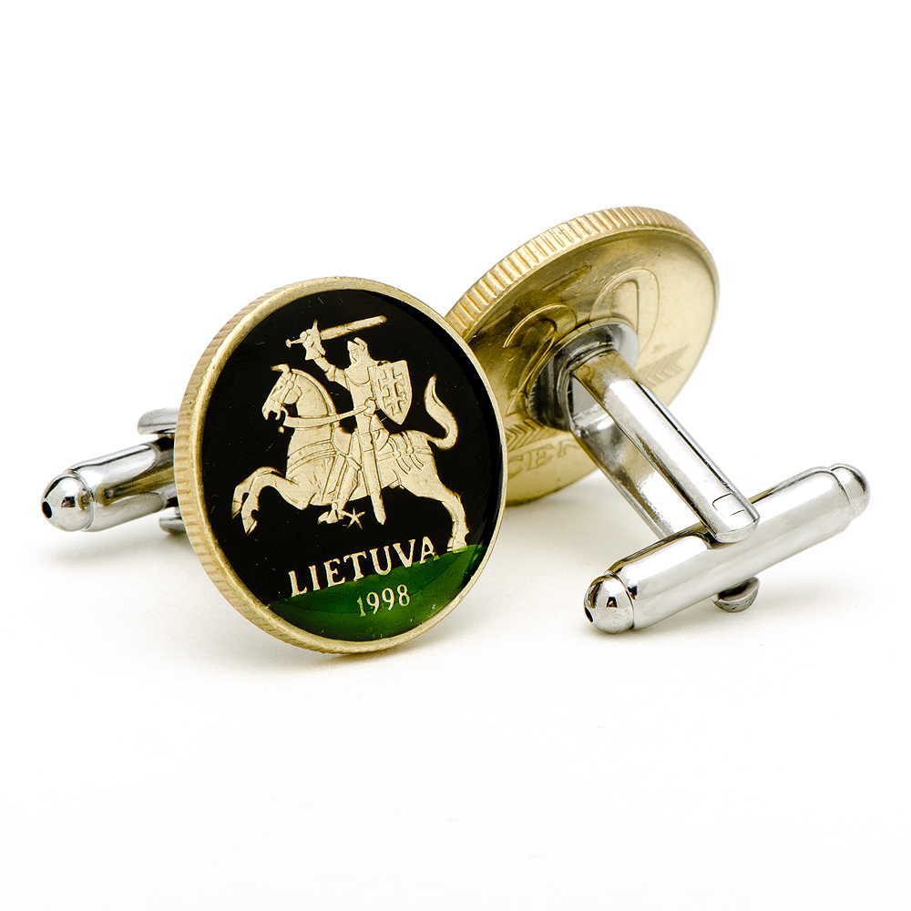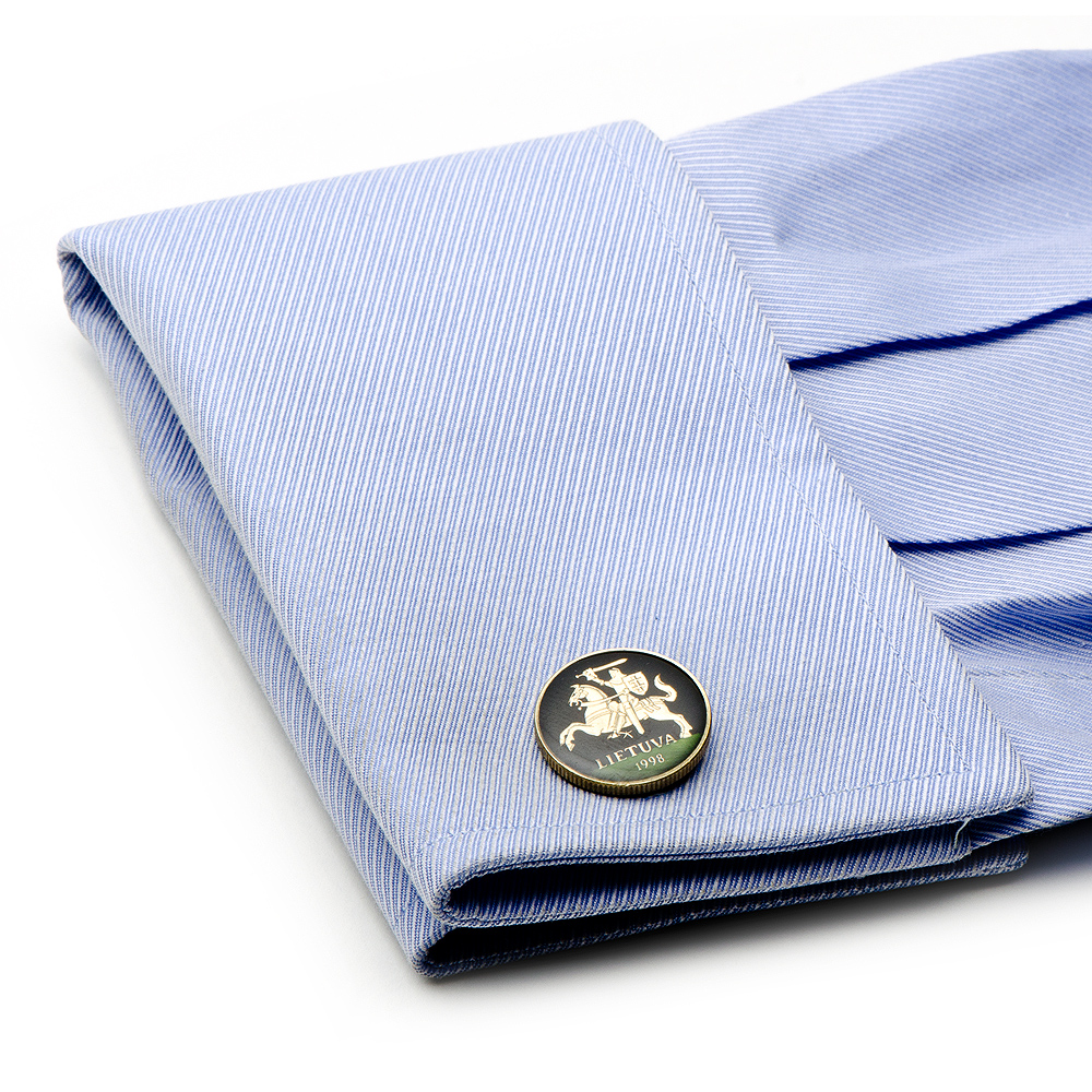 Each Coin cufflink is hand painted and unique. The Hand Painted Lithuania Coin Cufflinks feature an authentic Lithuanian coin with enamel. Cufflinks by Penny Black 40.