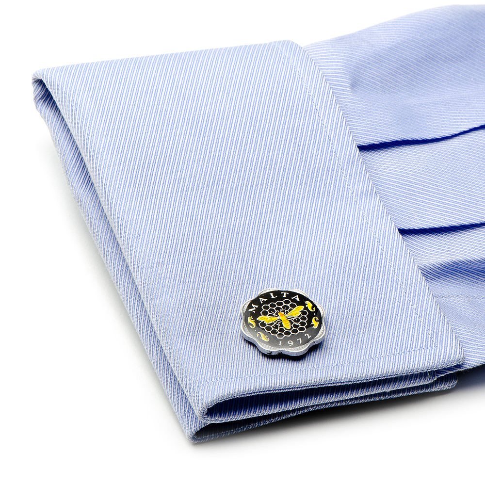 Each Coin cufflink is hand painted and unique. The Hand Painted Malta Coin Cufflinks feature an authentic Maltese coin with enamel. Cufflinks by Penny Black 40.