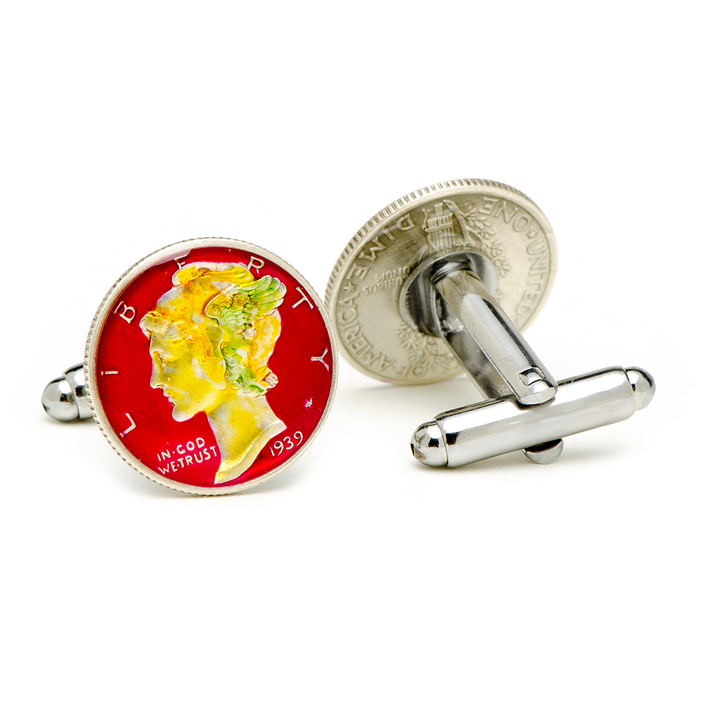 Loading Zoom, please wait Hand Painted Red Liberty Dime Cufflinks