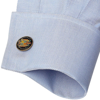 Tour Spain and soak in its rich heritage while looking sharp. Let a part of this incredible nation rub on your sense of fashion through this pair of Hand Painted Spanish Una Peseta Cufflinks. Designed by Penny Black 40, the cufflinks are made from rhodium plated silver. Unique cuff links to add to your collection or give to someone special as a gift. - Approximately 5/8" in diameter - Hand Painted Authentic Una Pesta Coin - Rhodium Plated Silver Bullet Backing