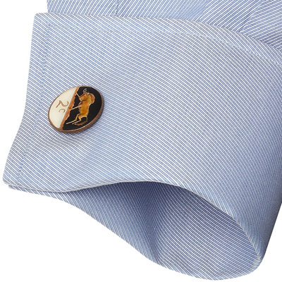 These Switzerland Coins are painted in vibrant blues, oranges ,and greens. Authentic in every way, the Swiss Coin Cufflink features each side of the coin on a separate cufflink. - Approximately 6/8" in diameter - Hand Painted Authentic Switzerland Coins - Rhodium Plated Silver Bullet Backing.