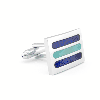 These are a fashionable complement to your French cuff shirts. Nice lightweight feel works well with French cuff shirts and blouses. Trendy design with an urban flare. These unique high fashion rhodium cuff links are encased with alternating shades of blue enamel. Amongst the most attractive substances used today to craft jewelry and fine art we find enamel. This material can be obtained by the combination of powdered glass and high levels of heat. The physical appearance of the material can be compared to soft glass because it has a glossy consistency which is a perfect complement to any object made of metal or related materials which are used by artists. Size is: 13/16" x 9/16". Presentation box is included.