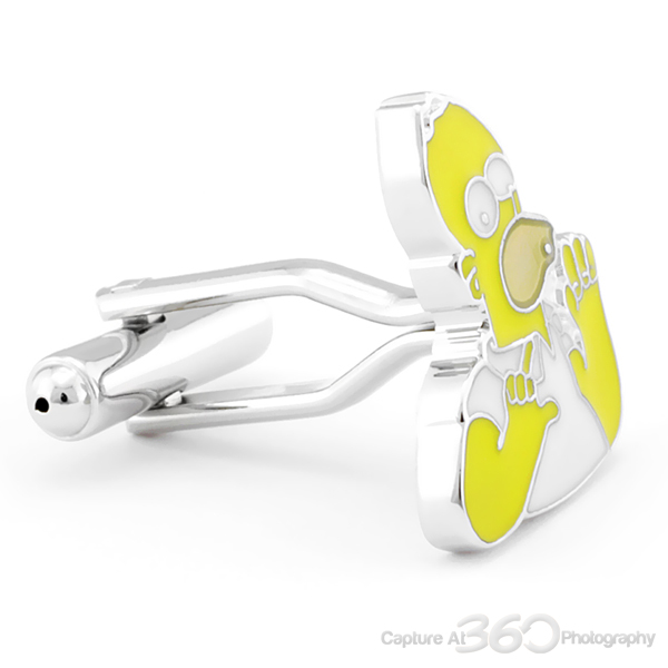 It is a Homer Simpson - Yellow Simpsons Cufflinks. Everyone loves The Simpsons – the award winning TV show and box office hit movie together have sealed the success of the best loved animated television family. Have some fun at your next night on the town and dress up a pair of dark denim jeans with a French cuff shirt and a set of Homer Simpson yellow cufflinks to show everyone what a great sense of humor you have! Each Homer Simpson cufflink is set in a rhodium silver frame so that you never have to worry about polishing, and is finished by hand to ensure top quality cufflinks with a designer touch. These cufflinks make fantastic gifts for both men and women who are fans of the comedy series The Simpsons, and offer a fun conversation topic for boring meetings or events.