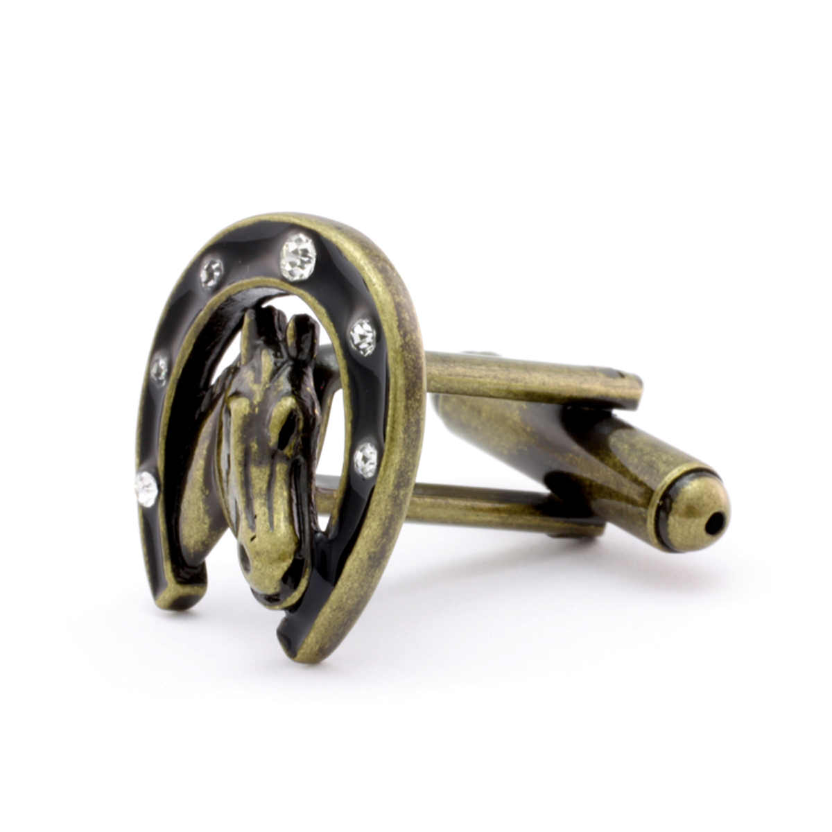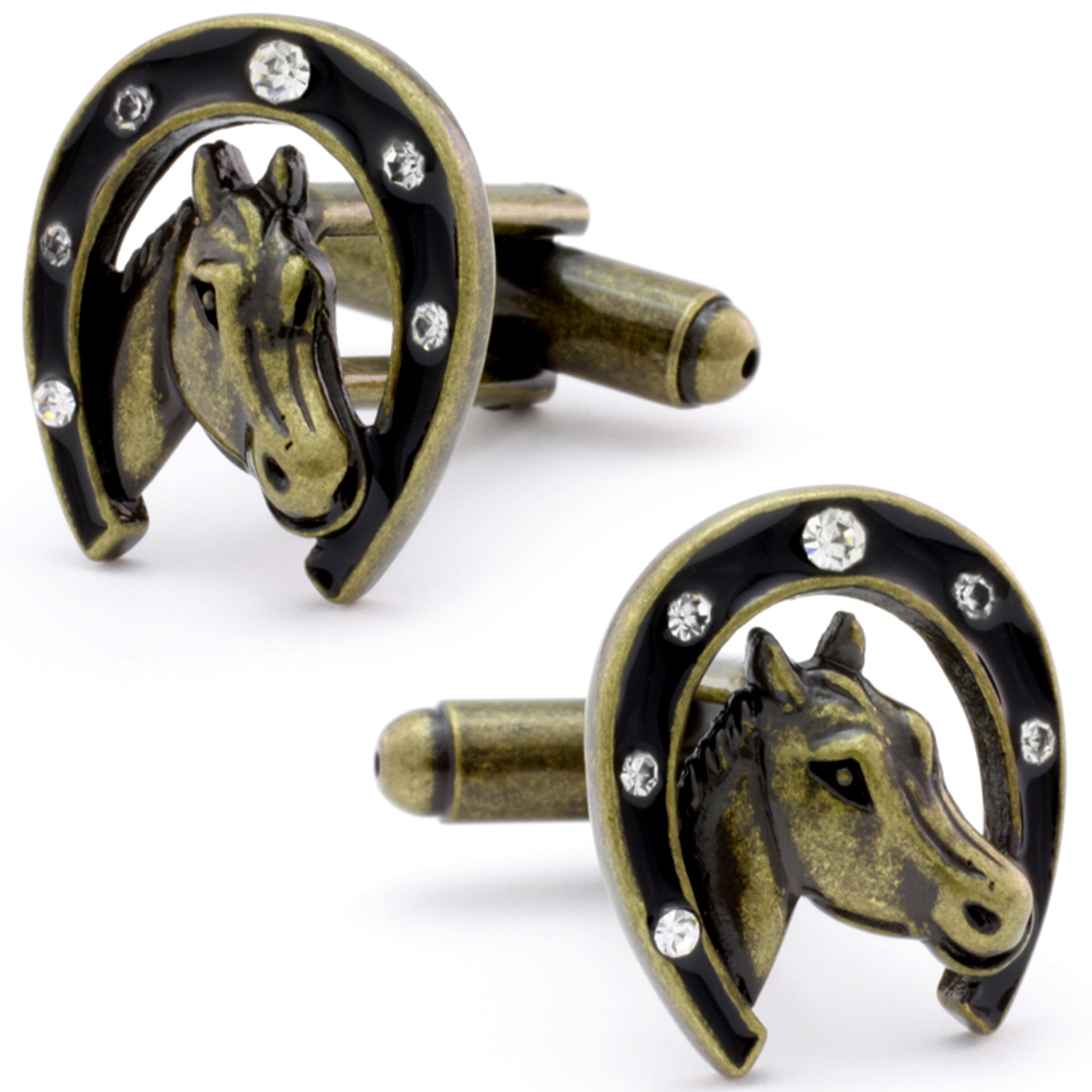 These beautiful cufflinks will bring some style, and possibly some luck, to your sleeve. The simple horseshoe design is accented with a horse head for a truly equestrian look. Wear them to the office or the races for the perfect touch of personality.