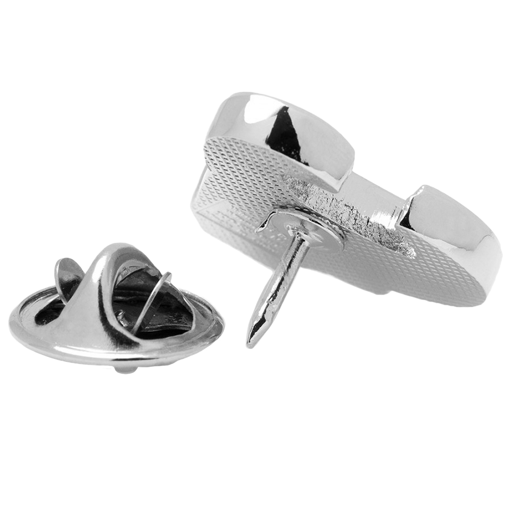 Approximately 3/4" x 3/4". Nickel base metal and enamel. Clutch back closure. Officially licensed by the NFL