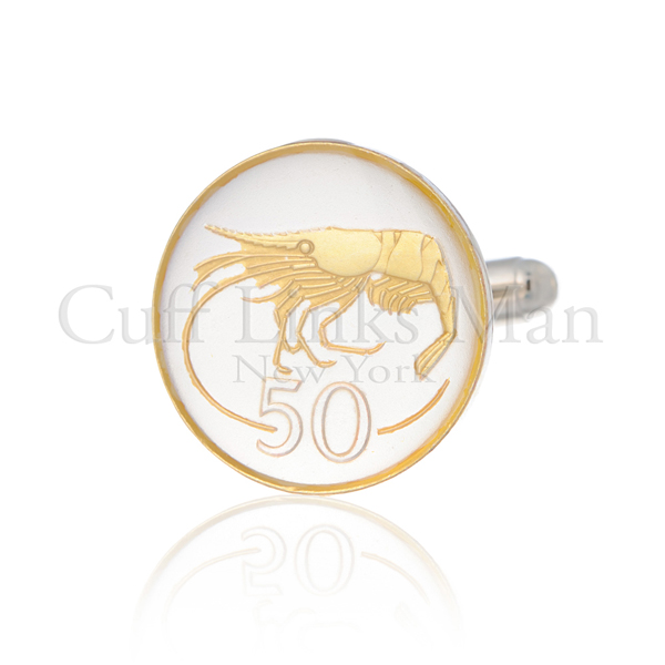 This breathtaking and exclusive work turns these coins into stunning and true works of art. Each coin is hermetically sealed against wear in clear hard acrylic coating. Each of these beautiful coins is then made into a unique pair of cuff links and placed in a nice jewelry box. These Iceland 50-Aurar Shrimp coin cufflinks were designed from silver and accented in 24-karat gold for an invigorating two-tone appearance. You won’t find craftsmanship like this anywhere else, as each cufflink resembles a real Iceland 50-aurar coin piece. Spruce up your cufflink collection and pay tribute to a creature that doesn’t get much recognition with a pair of Iceland 50-Aurar Shrimp coin cufflinks. Chances are, you’ll be the only one in the room wearing them.