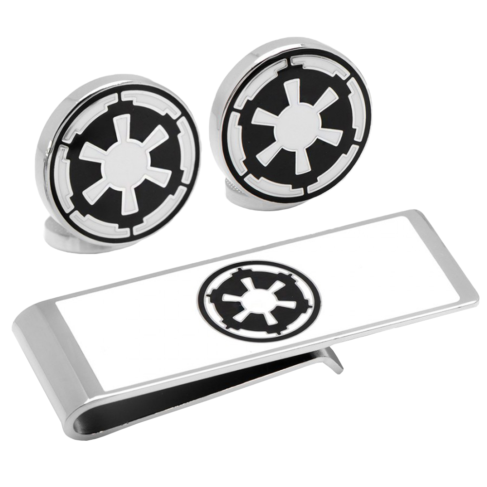 Set includes officially licensed cufflinks and money clip, silver tone and enamel, Officially licensed by Lucas film LTD.