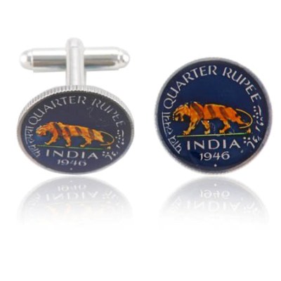 The national animal tiger is shown in the coin of India. The tiger is the symbol of India's wealth of wildlife. The design in hand printed in this coin cufflinks to make it unique. Try these sophisticated cufflinks; it certainly adds a hint of fashion finesse to your formal outfit.