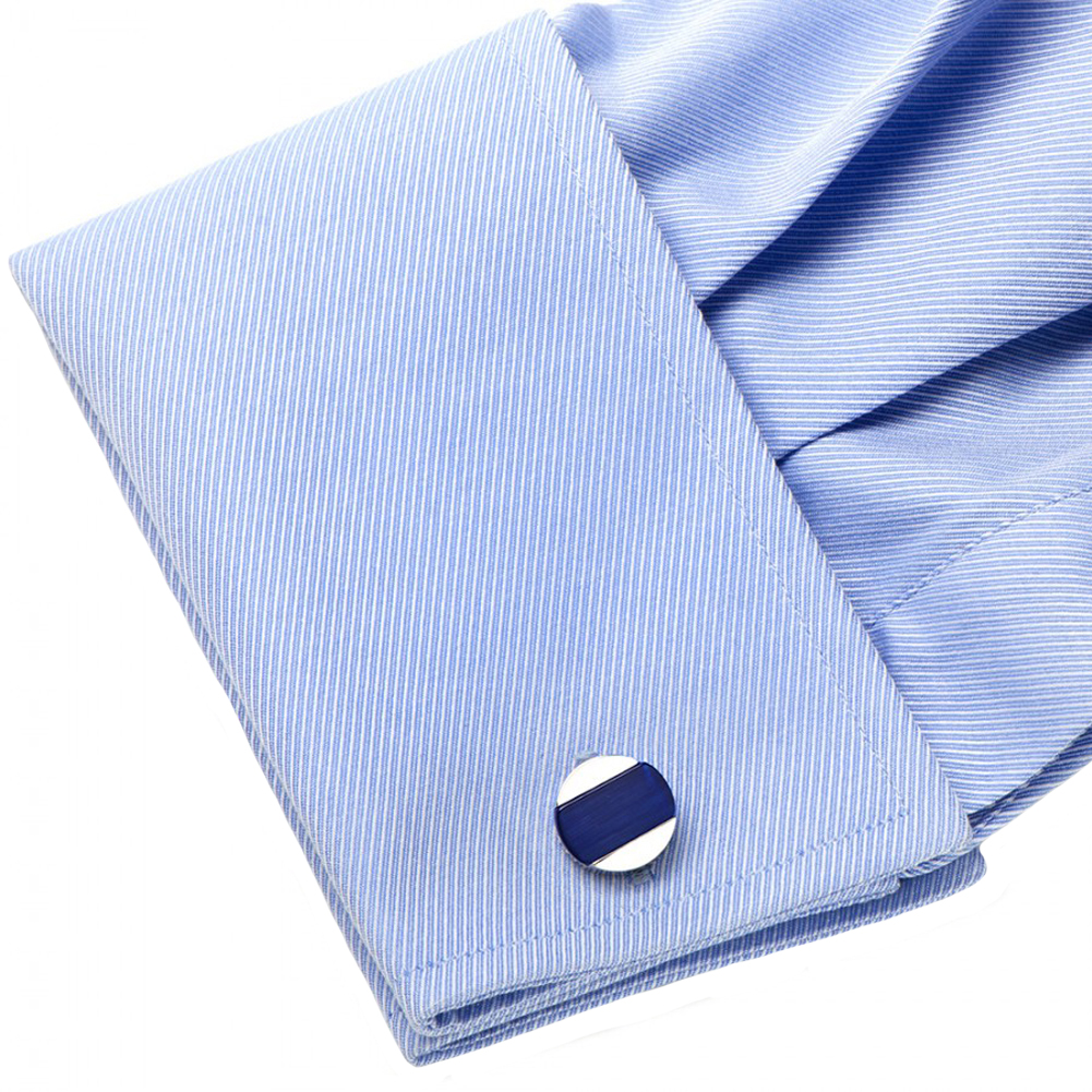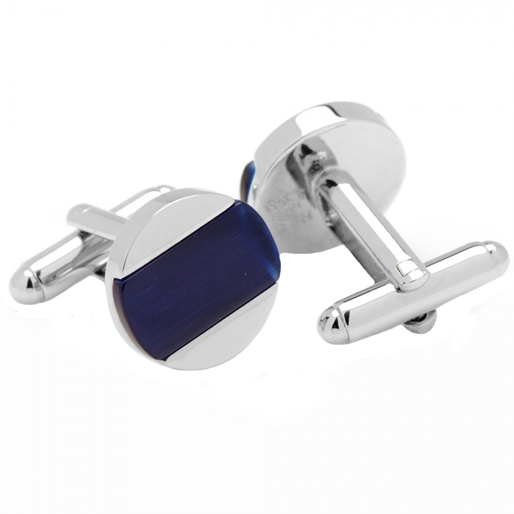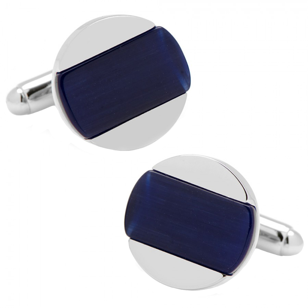 Inlaid Navy Blue Cats eye Disc Cufflinks