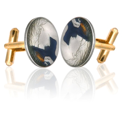 David is a masterpiece of Renaissance sculpture sculpted by Michelangelo. By the 20th century, Michelangelo's David had become iconic shorthand for Italian culture. The 20 Centesimi coin of ancient Italy had this image of David in it. Wear these gorgeous hand painted coin cufflinks to add a historical interest to your outfit.
