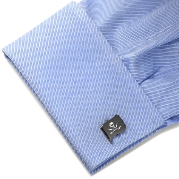 Approximately 3/4" x 5/8". Black plated base metal and enamel. Bullet back closure.
