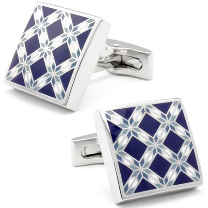 The snowflake or spritz pattern of these blue Lapis and silvertone accented cufflinks create a unique spin on the traditional accessory, without compromising utility. The gleaming silver setting is also implemented in the secure hardware and conventional fixture. The surface, however, if far from conventional displaying a distinctive pattern traditionally demonstrated in other mediums. The ivory and ice blue design theme is inlaid against a rich and inviting blue Lapis- polished to a high-gloss sheen. These are the ideal pair of cufflinks for the jewelry lover who has an expansive collection; they are a gift that will be revered for their individuality and keen style.