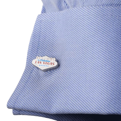 The famous sign seen upon entering Las Vegas. Despite all the neon, this classic still remains the most recognizable icon of the City of Sin. Handcrafted with the utmost attention to detail, these Las Vegas cufflinks resemble the actual sign of the famed city. The thick coat of enamel and nickel-plated base add a bit of flair, and the swivel back closure makes for easy access and removal. Each cufflink was delicately polished by hand for an elaborate shine. The quality is exceptional and unmatched. If you�re headed out to Las Vegas for a getaway trip with the boys, make sure you are wearing a pair of Las Vegas cuff links. Always remember � what happens in Vegas � stays in Vegas! Presentation box is included. A great gift to remember a trip to Las Vegas. Enamel on a nickel plated swivel back. Cufflinks by Cufflinks, Inc.