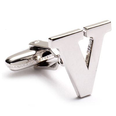 It is a Set of two letter V cufflinks in shiny rhodium plated silver finish. Approximately it will measure 13/16” x 5/8".It comes with swivel back closure. Cufflinks not sold individually. Gift boxed. These letter “V” cuff links are exclusively handcrafted with glossy finish.