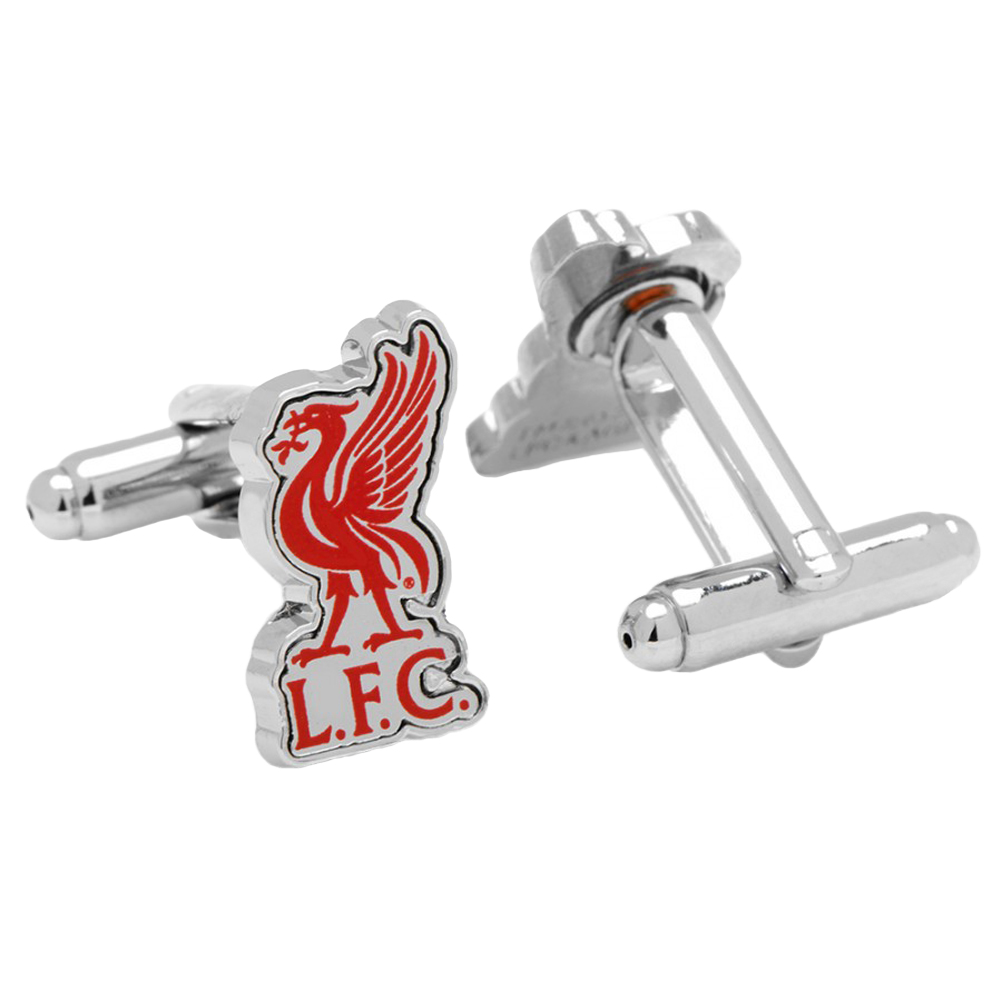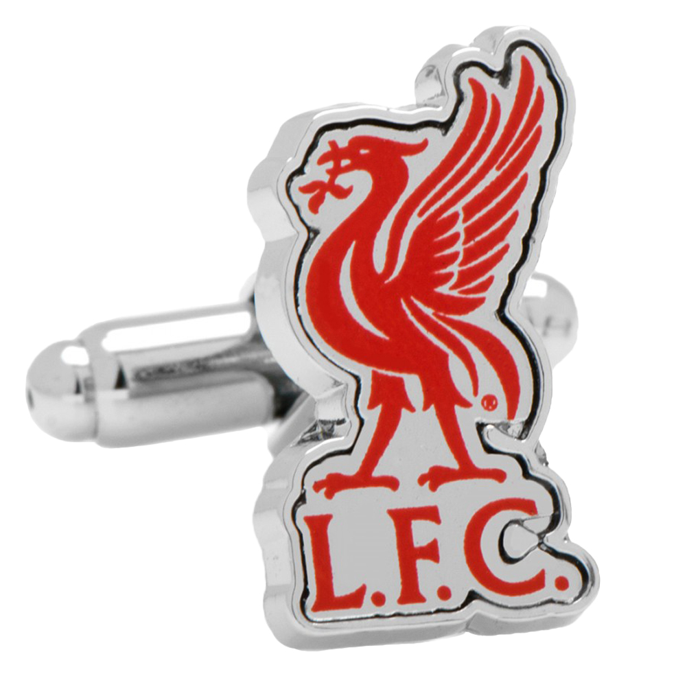 Official logo cufflinks of the English Premier League's Liverpool Football Club. Approximately 5/8"W x 3/4"H. Enamel and silver tone . Bullet back closure