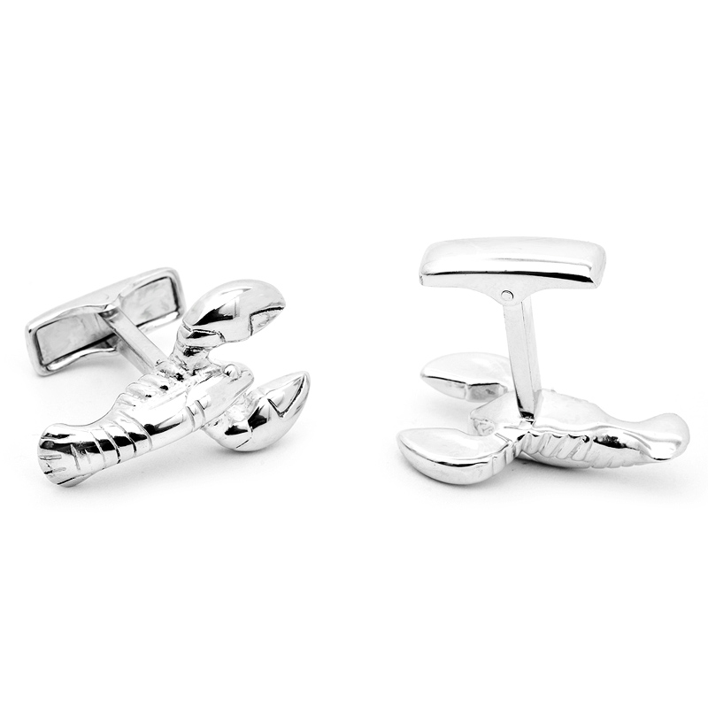 Shiny sterling silver lobster cufflinks feature incredible detail and exquisite craftsmanship.