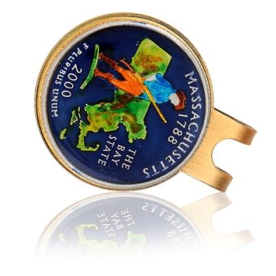 The Massachusetts quarter features a design of The Minuteman, a famous statue that stands guard at The Minuteman National Historical Park in Concord, Massachusetts. Your little luxury hand painted golf markers with this intricate design awaits you, to be picked up and tossed into your pocket again and again. This Massachusetts is located in the Northeastern United States, and is bordered by Vermont, New Hampshire, New York, Connecticut, and Rhode Island. The state has been a significant part of American history, with Plymouth being the second English settlement that was permanent in North America.
