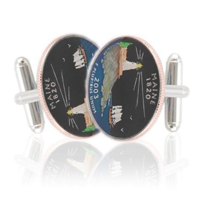 These cufflink is hand painted and then treated with fire to create the beautiful colors. Finally, a special resin is used to create depth and a the deep beauty of the cufflink. These cufflinks would be the perfect gift for a Maine native or anybody.