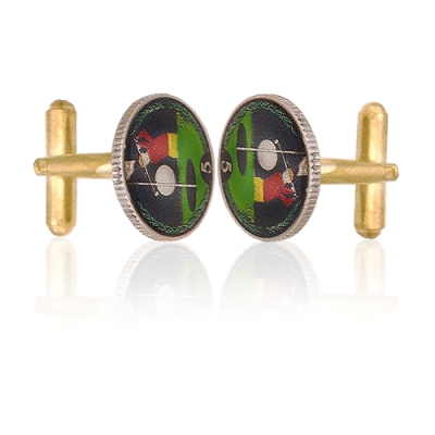 Isle of Man golfer cufflinks for Tiger Woods protégés. If you are an avid golfer then you will immediately recognize the world famous golf courses located on the majestically beautiful Isle of Man. The hand-painted coin or medallion is truly a gift or keepsake to be treasured forever. This unique design is captured in this coin cufflinks which accentuates the design