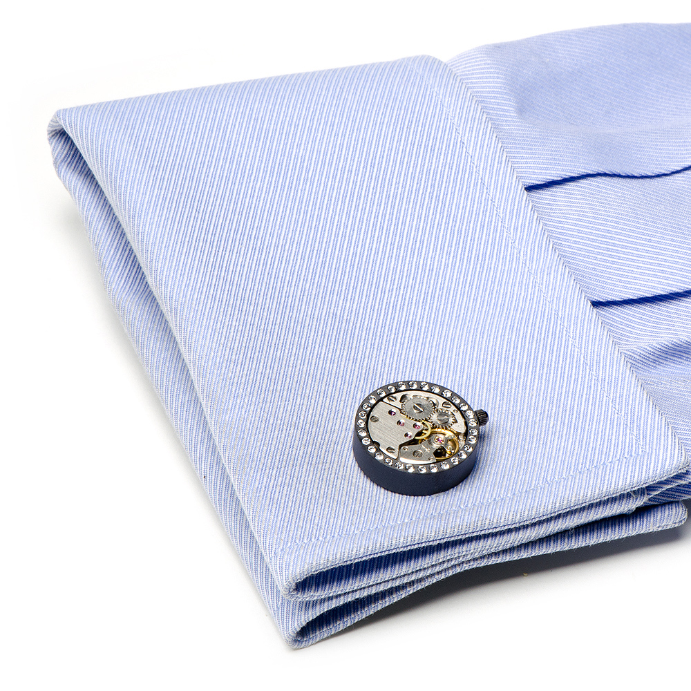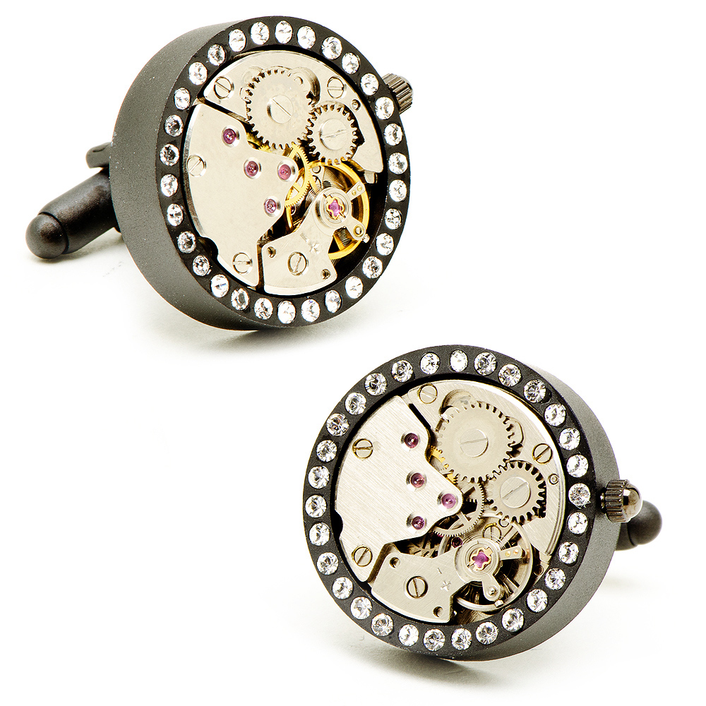 Loading Zoom, please wait Matte Black & Crystals Watch Movement Cufflinks