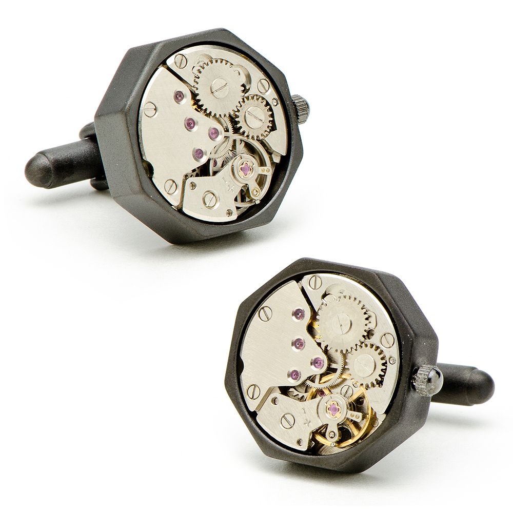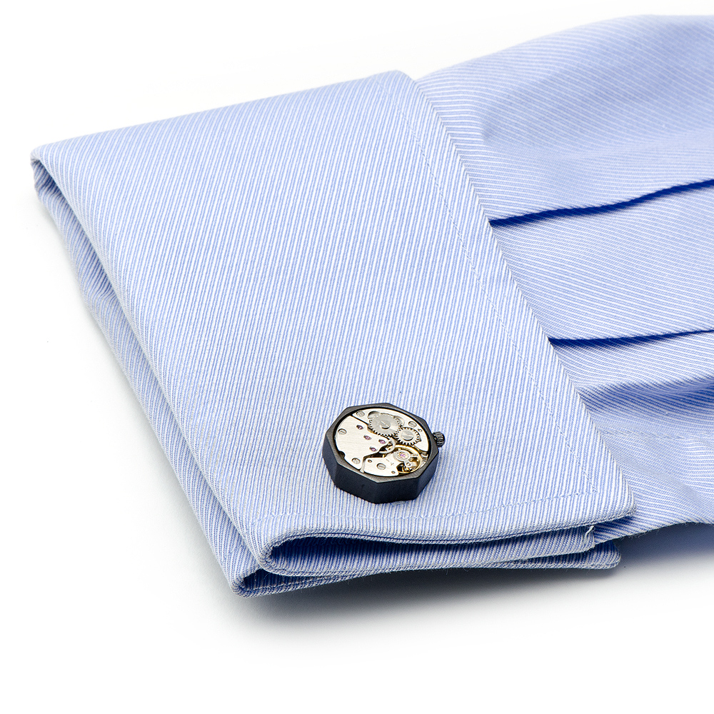- Stainless Steel Silver Kinetic Watch Movement Cufflinks