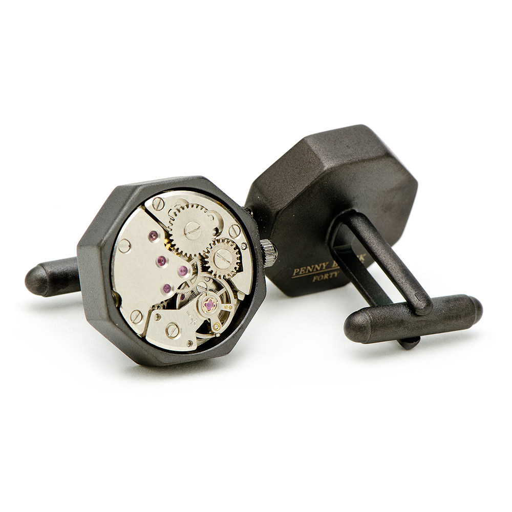 - Matte Black & MOP Inlaid Watch Movement Cufflinks