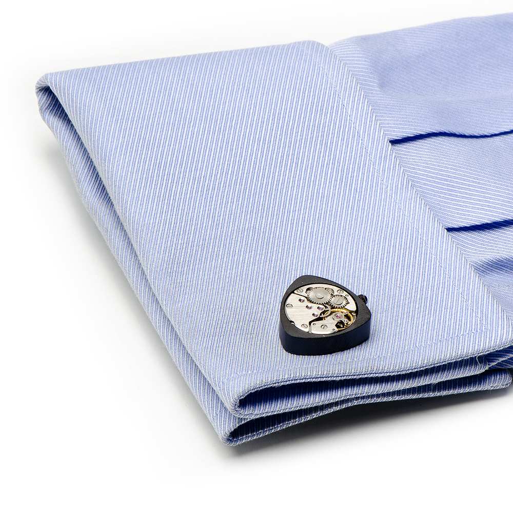 A true collectors piece, actual movements are taken from wind-up watches watches of the early to mid 20th Century. Featuring functional gears, levers and jewels Matte Black Triangle Watch Movement Cufflinks allow you to wear engineering at its finest.