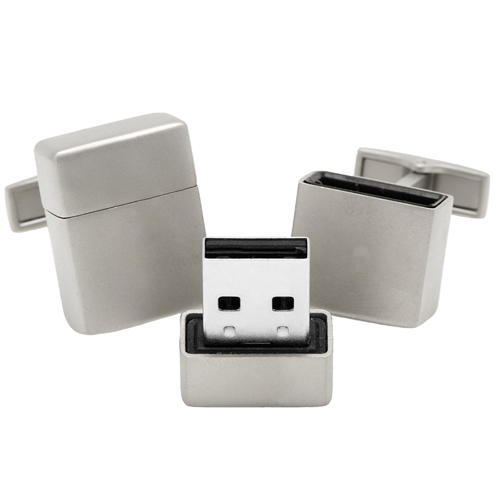 Approximately 7/8" x 5/8", 4GB storage capacity on each cufflink, (8GB total memory) Whale back closure.