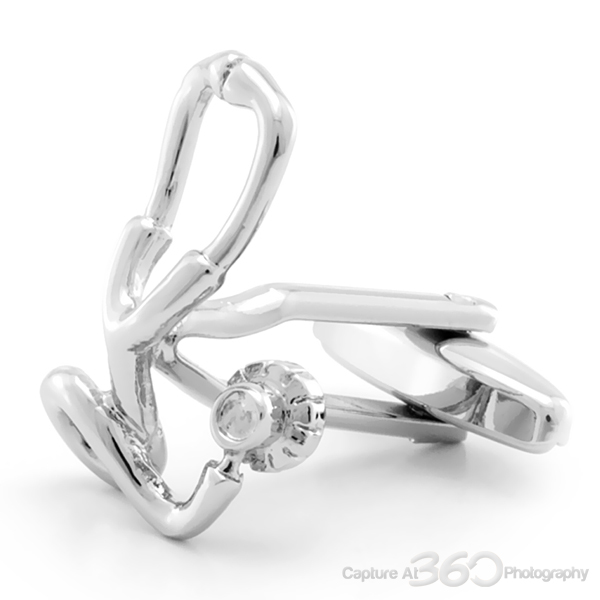 These intricate silvertone stethoscope cufflinks are perfect for the practicing or aspiring medical provider; the detail is exemplary, and gives even the best-dressed man a novel finishing touch to his appearance! This is the pair of doctor cufflinks that any discriminating wearer will enjoy, as will those who admire and love fine jewelry and unique cufflinks! The fine detail of the tiny stethoscope, from ear tips to diaphragm, is lifelike and attentive to actual medical equipment. The silver tubing loops around creating a cohesive and aesthetically pleasing design to sport the shirt cuffs. This recognizable symbol of medical affiliation also will be a welcome addition to any cufflink collection; the stethoscope cufflinks are high quality, tasteful, and fun! There will be no mistaking what these cufflinks represent, and they will garner compliments and comments from others. These accurate and intricate cufflinks add some whimsy to the cuffs of any shirt. These are not just doctors cufflinks, but a jewelry item for anyone with a flair for fine apparel accents!