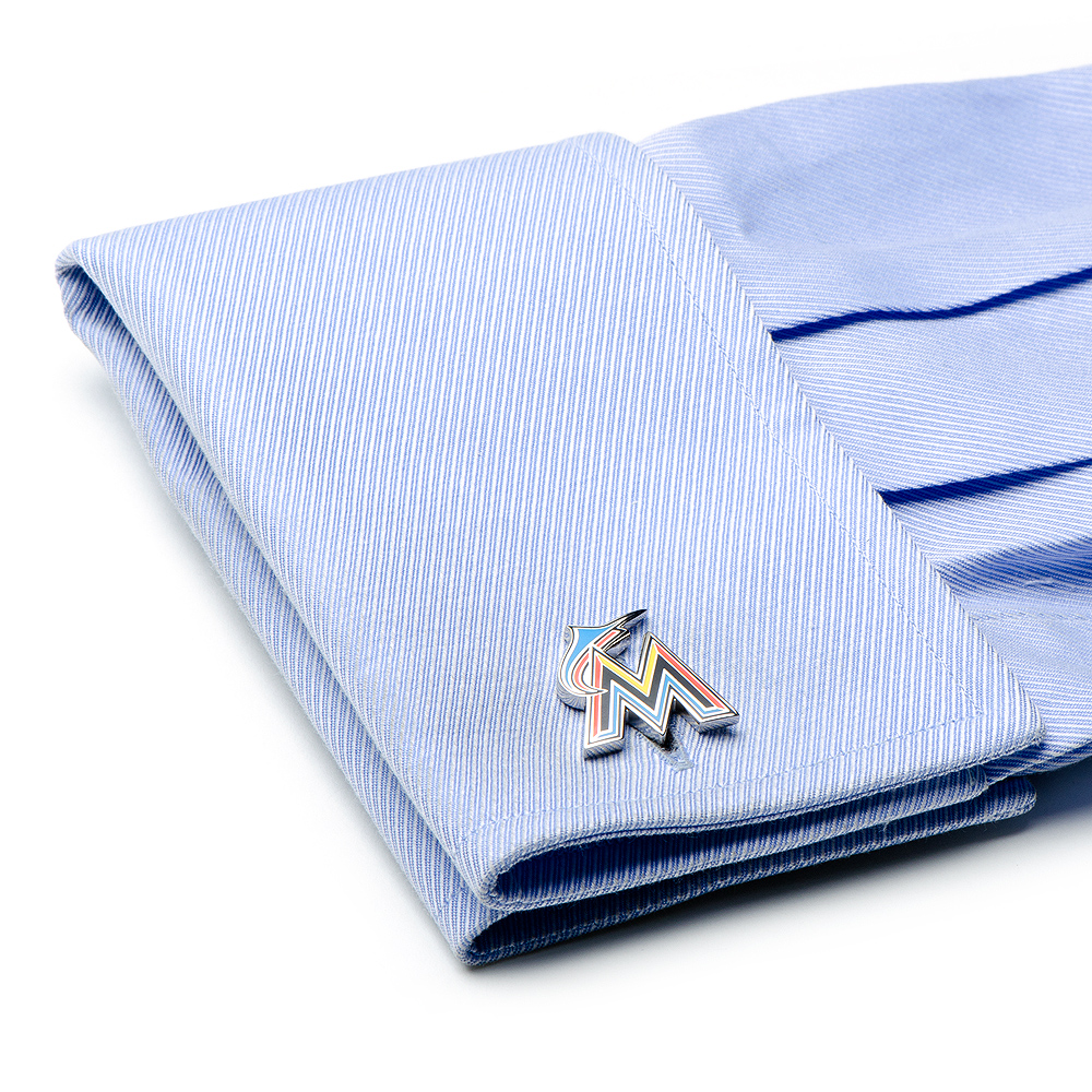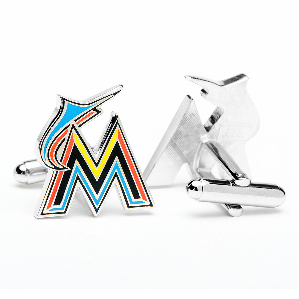 Miami Marlins. Enamel finish cufflinks. Approximately 3/4" x 3/4" , Plated base metal with Bullet back closure. Officially licensed by MLB.