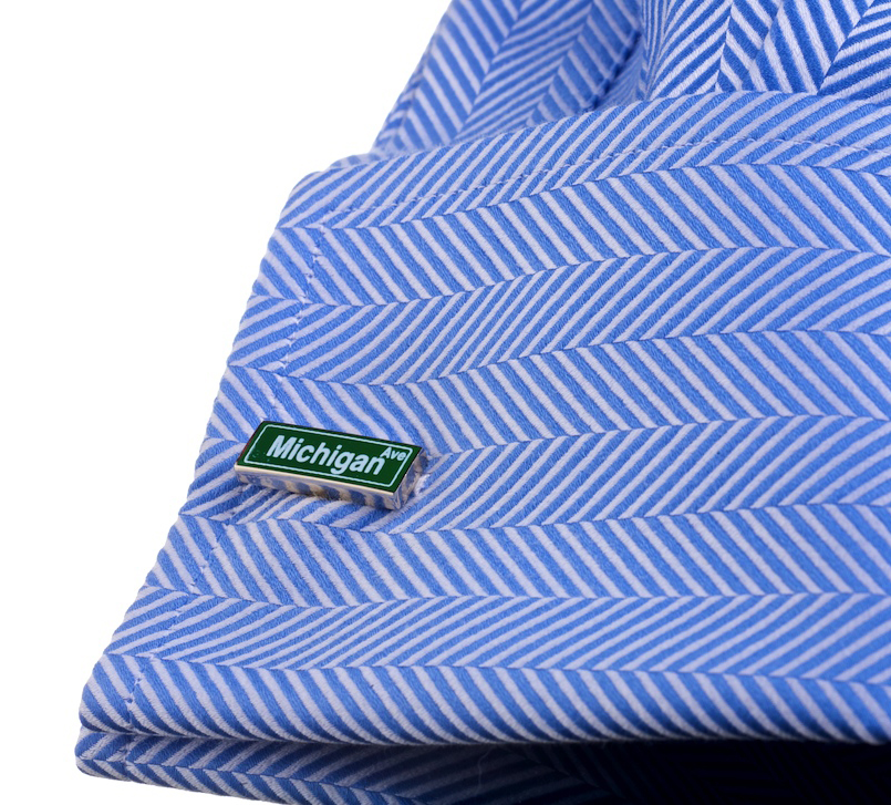 Support your Chicago pride with this icon of the streets. Michigan Avenue cufflinks replicate the street sign of one of the most famous and luxurious streets in America. Also known as the Magnificent Mile.