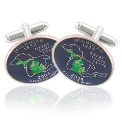These Michigan State Coin Cufflinks celebrate the rich history of the Great Lakes with an delineate of both the state and the surrounding lakes. We have the world's largest selection of engraved cufflinks. These Cuff Links Man has the ability to create many custom cufflinks with our in-house engraving service. We also have custom made cufflink choices like map cufflinks, photo cufflinks and signature cufflinks.