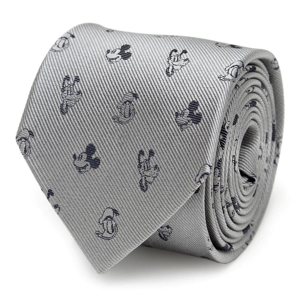 A classic style with a twist, this tie offers a fun and subtle Disney pattern that can be worn in a professional setting. Black Mickey Mouse, Donald, and Pluto motifs create a dot pattern on the gray base of our Mickey and Friends tie. This tie will maintain its shape and hold a perfect knot thanks to being crafted with durable yet soft 100% Silk. Pairs perfectly with any of our other Disney products.