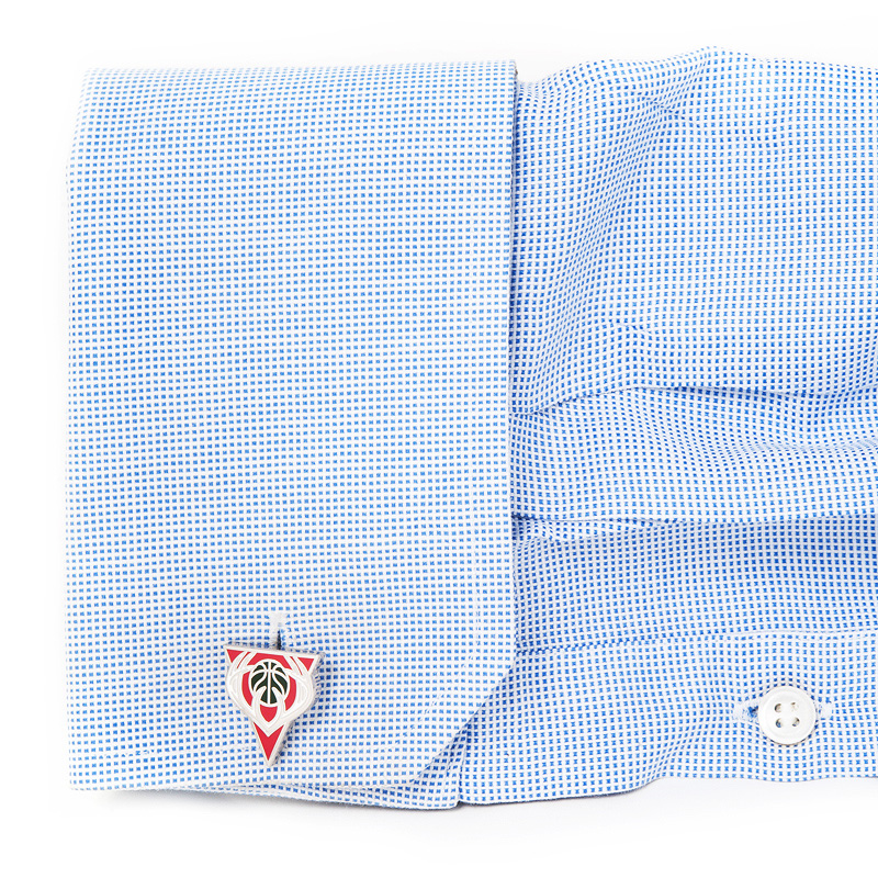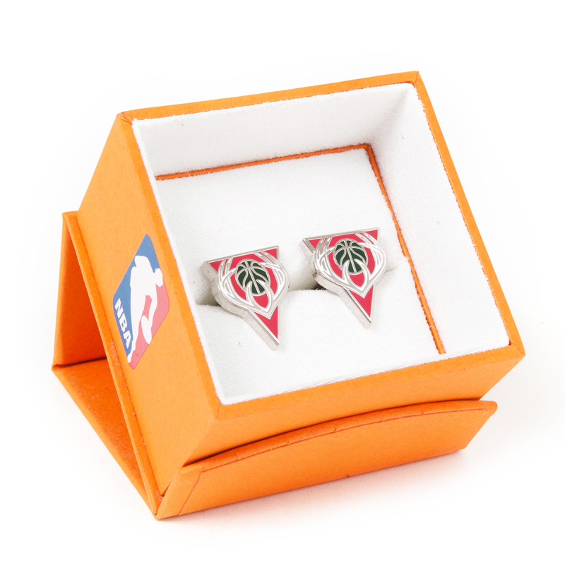 Approximately 3/4" x 5/8". Rhodium plated base metal and enamel. Bullet back closure. Officially licensed by the NBA.