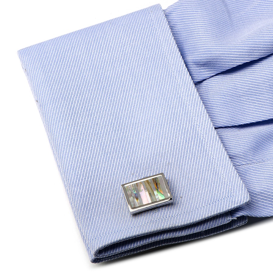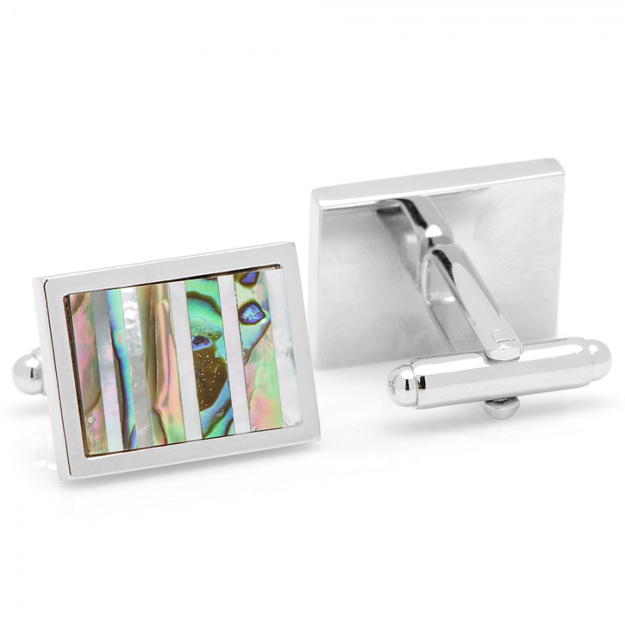 Add a touch of style with the Mother of Pearl and Abalone Vertical Stripes Cufflinks. They are constructed of silver plated metal.
