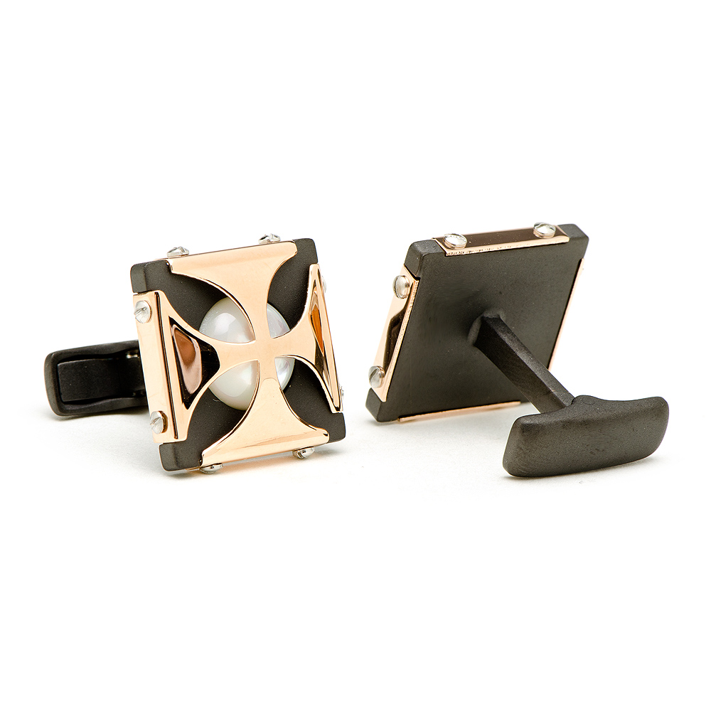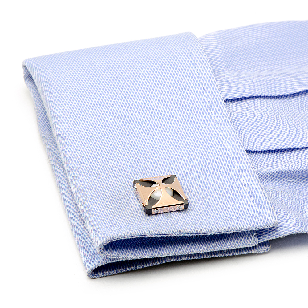 Approximately 3/4" x 3/4" Matte plack and rose gold plated with MOP Whale back closure.