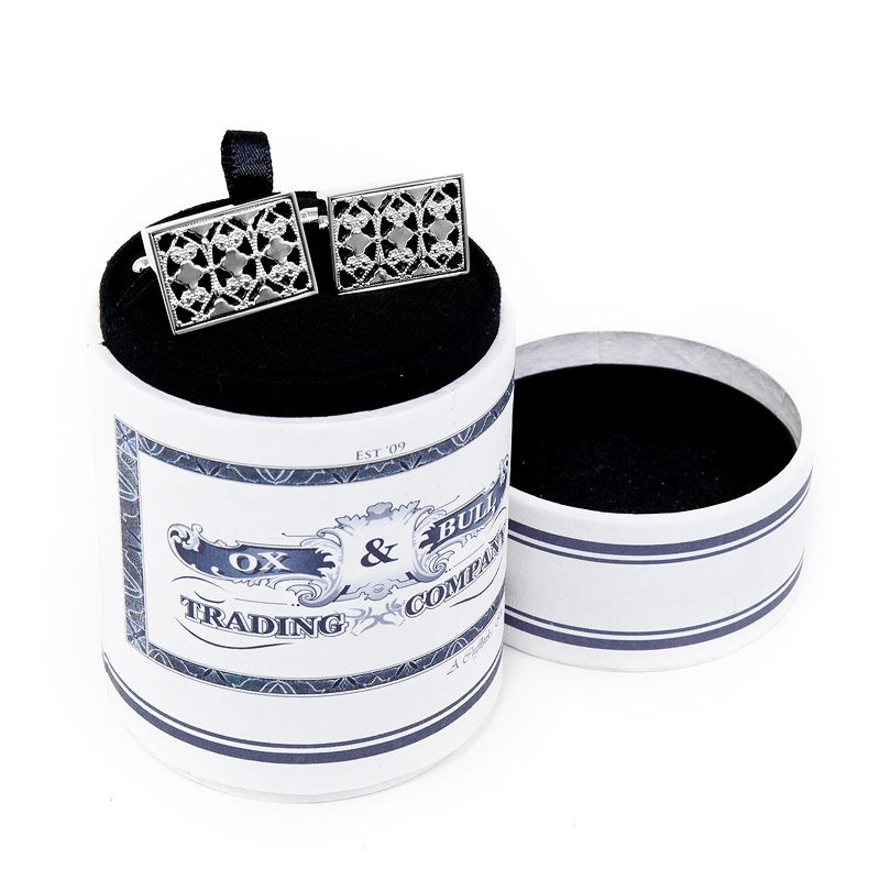This Moroccan Onyx Rectangle Cufflinks add a touch of elegance to any formal outfit with these classically styled cufflinks. Its highly stylized, an inset onyx stone radiates through the silver stage. Versatile and eye catching, the cufflinks are an exceptional way to show off your fashionable side. Cufflinks by Ox and Bull Trading Co.